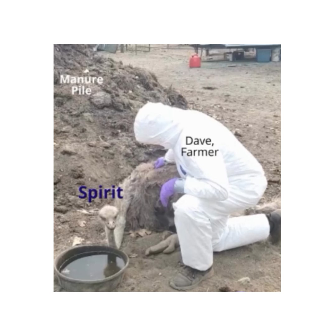 Spirit was unrecognizable to Dave, lying next to a manure pile and severely dehydrated.